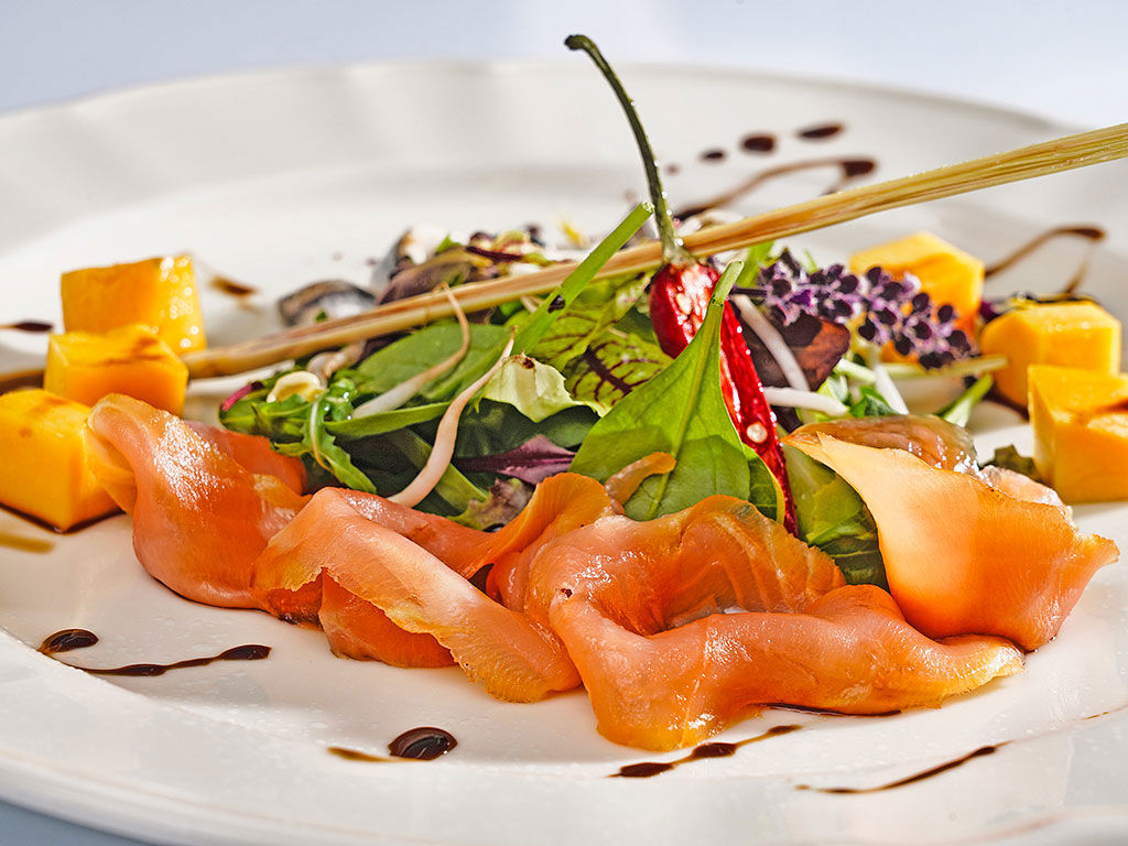 Il menù propone un ampio ventaglio di piatti della tradizione italiana e grandi classici della cucina internazionale per soddisfare i palati più esigenti. Nelle sere d'estate la superba scenografia del parco crea un'atmosfera suggestiva divenendo meravigliosa cornice di romantiche cene a bordo piscina.